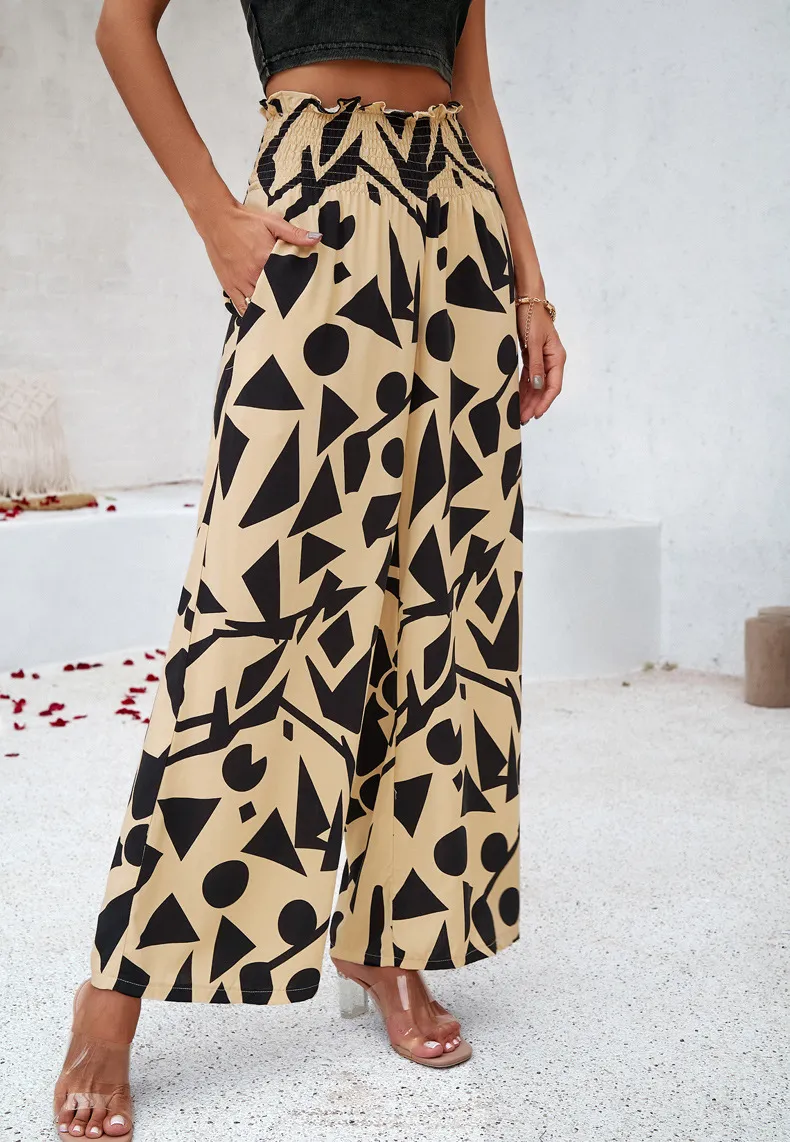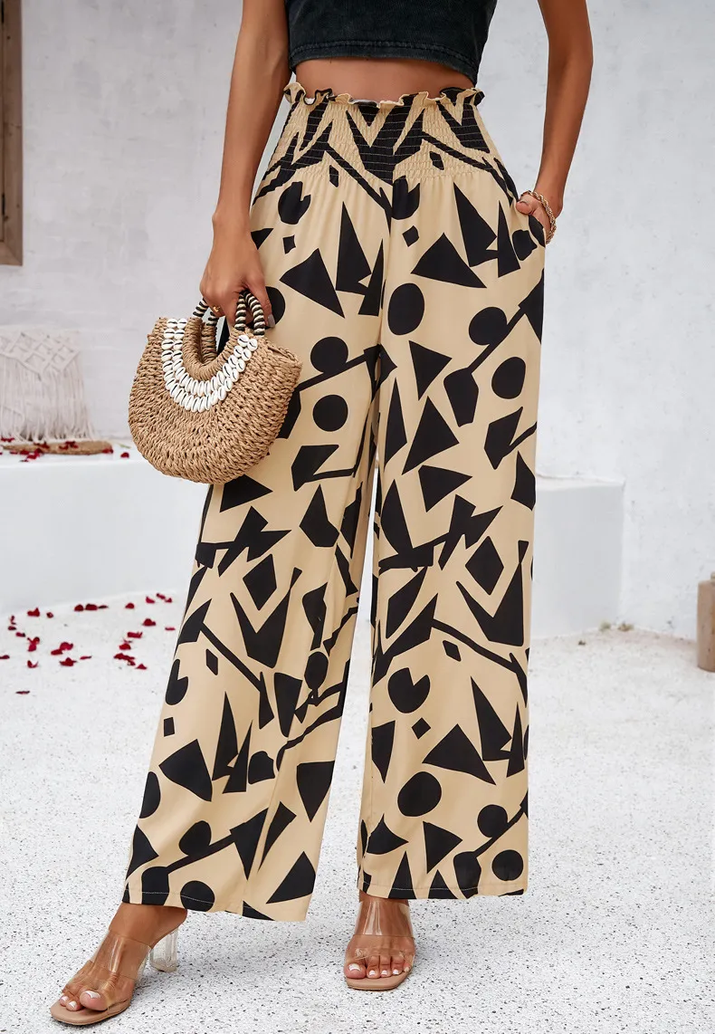 Elegant Printed Trousers Summer Loose Elastic High Waist Straight Pants For Beach Vacation Womens Clothing