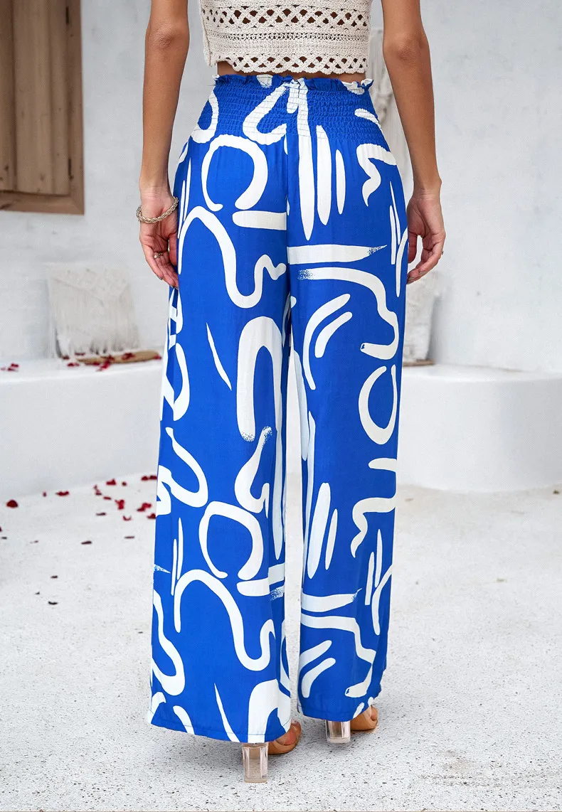 Elegant Printed Trousers Summer Loose Elastic High Waist Straight Pants For Beach Vacation Womens ClothingElegant Printed Trousers Summer Loose Elastic High Waist Straight Pants For Beach Vacation Womens Clothing